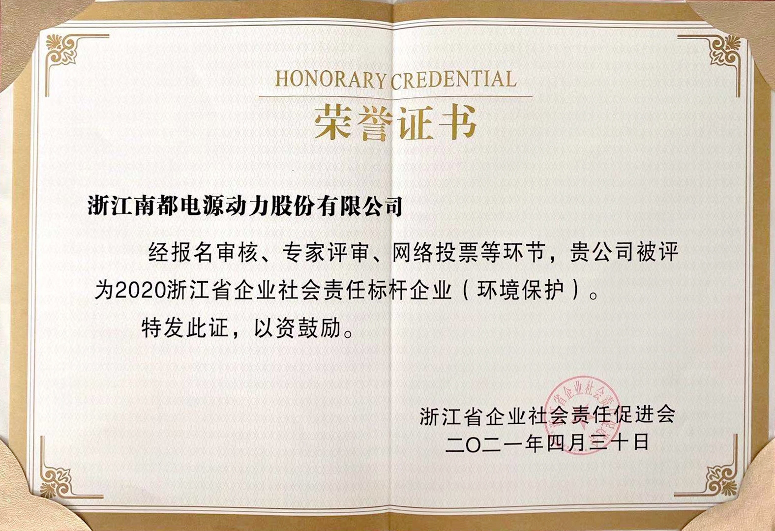 Õã½Ê¡ÆóÒµÉç»áÔðÈÎÔö½ø»á½¨ÉèÓÚ 2015 Ä꣬ÊÇÒ»¼ÒȫʡÐÔ¡¢·ÇÓªÀûÐÔ¡¢ÍŽáÐÔ¡¢×ÔÔ¸½á³ÉµÄÉç»á×éÖ¯»ú¹¹¡£±¾´ÎÆÀÑ¡Ô˶¯¾±¨ÃûÉóºË¡¢×¨¼ÒÆÀÉó¡¢ÍøÂçͶƱµÈ»·½Ú£¬¹² 32 ¼Òµ¥Î»±»ÆÀΪ 2020 Õã½Ê¡ÆóÒµÉç»áÔðÈαê¸ËÆóÒµ¡£