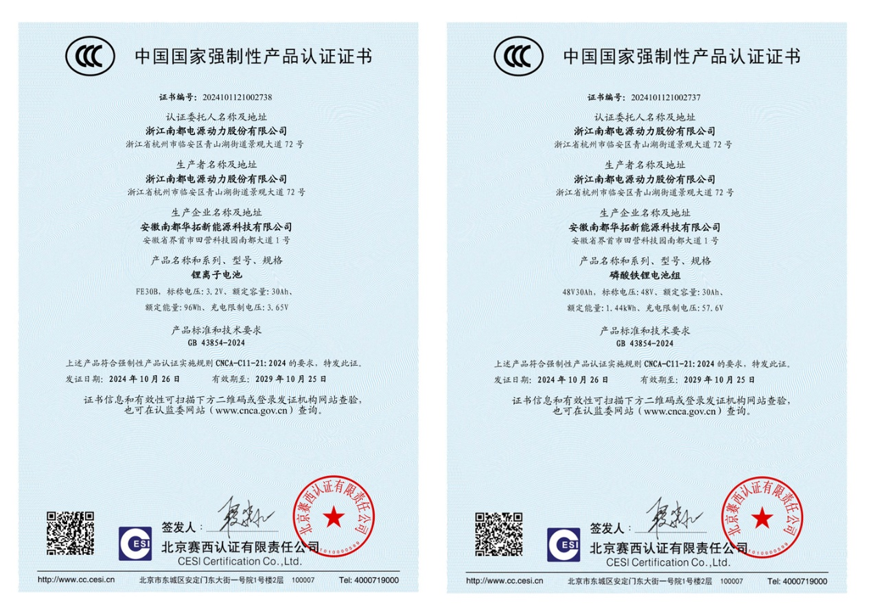 尊龙时凯官网注册起劲响应管理要求,通过提升电池的清静性能、能量密度、循环寿命及情形顺应性等要害指标,率先通过GB 43854国家强制标准,同时申请产品CCC认证。